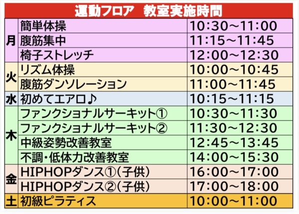★下記の時間は教室を開催していますが、マシンのご利用はできます。