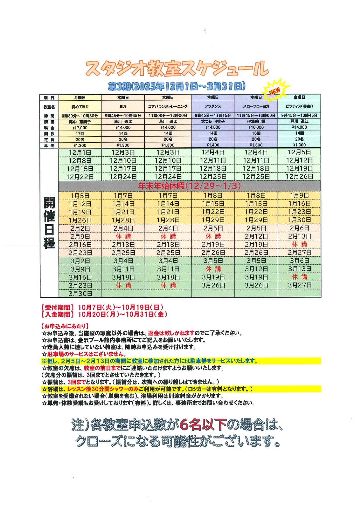 第3期のスタジオ教室の開港についてご連絡いたします。