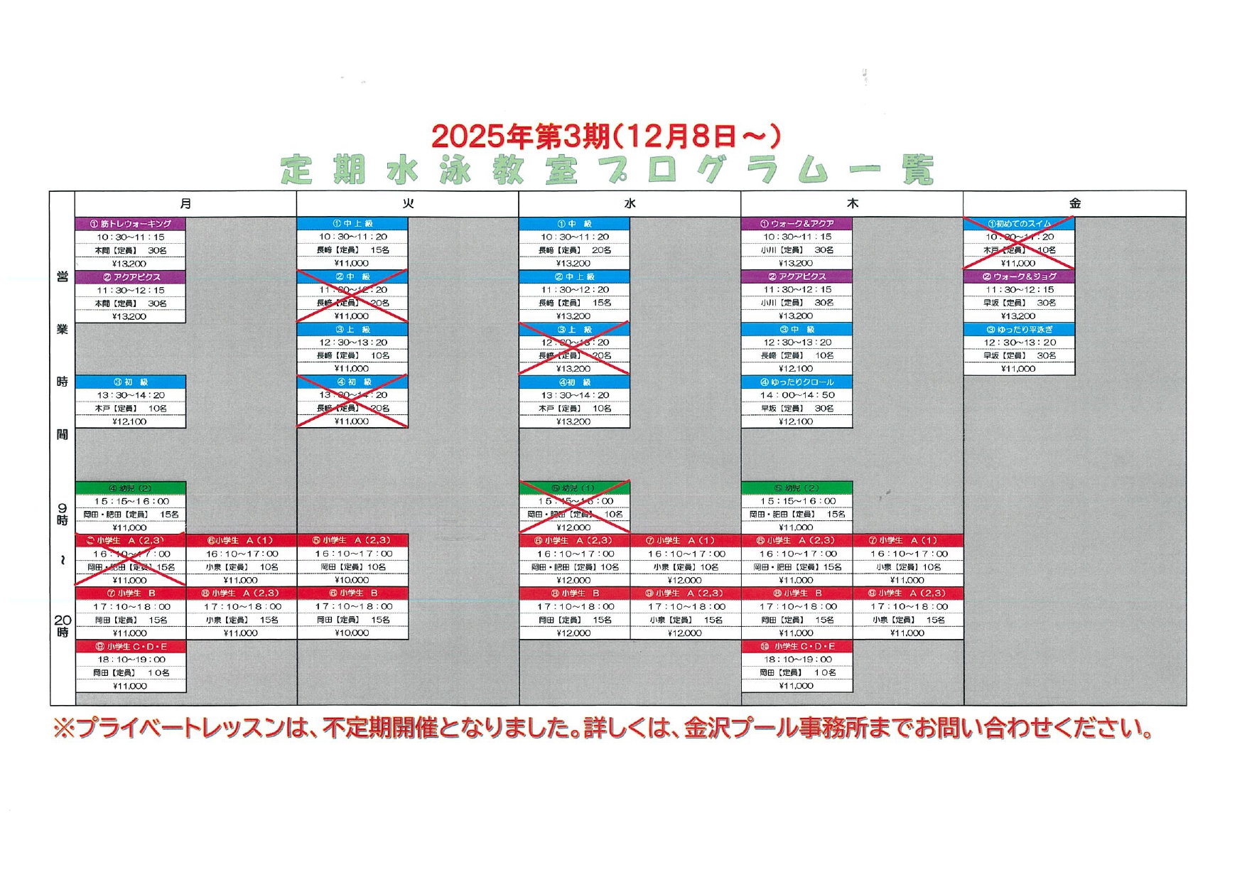 上記以外の教室ではまだ定期のお申込みを受付けております。